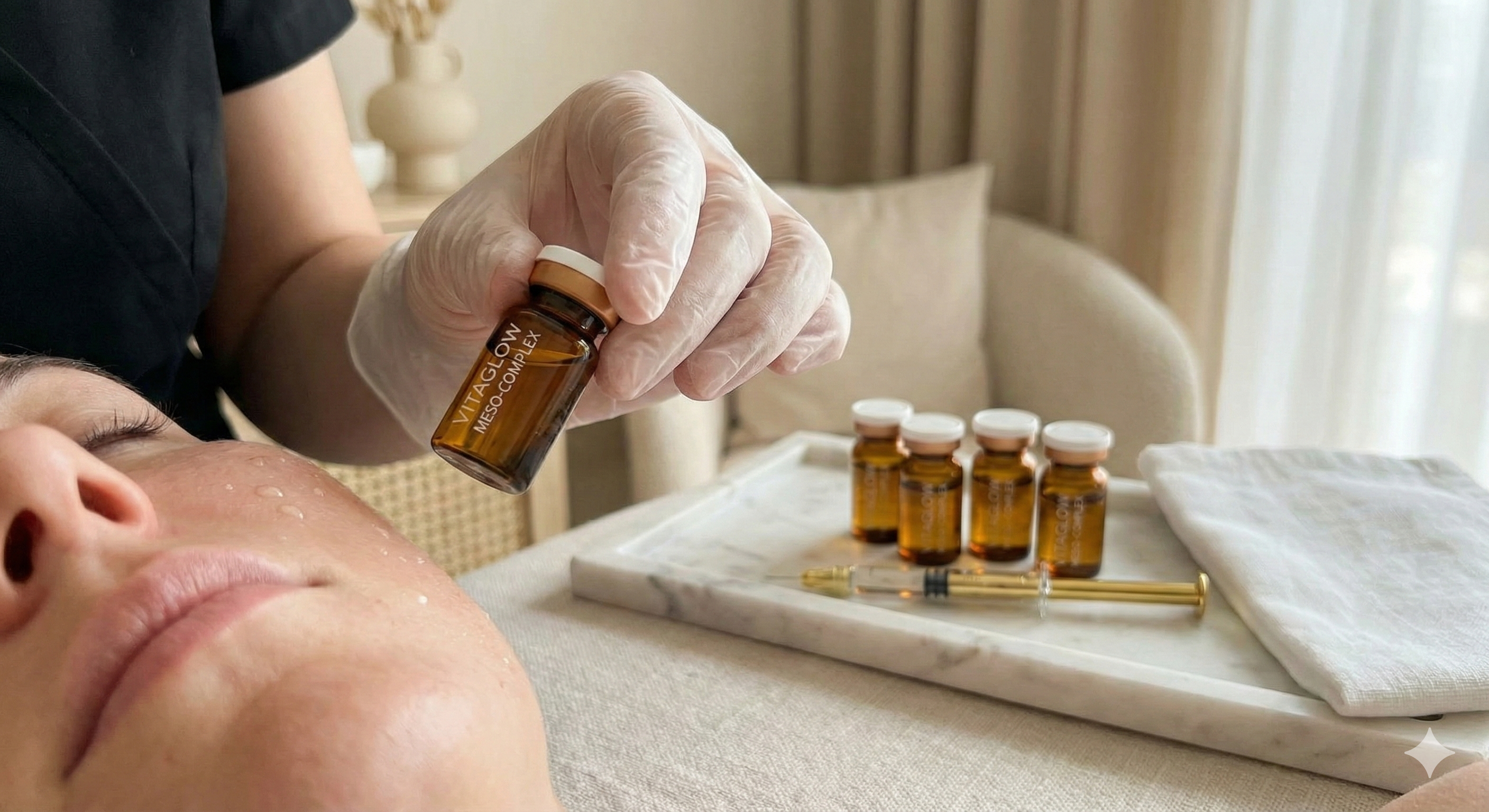 Targeted micro-injections of vitamins and amino acids for intense skin revitalization.